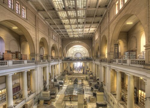 Das Grand Egyptian Museum (GEM) in Giza, nahe den Pyramiden, beeindruckt mit seiner modernen Architektur, einschließlich einer 800 Meter langen, transluzenten Steinwand und einem monumentalen Treppenaufgang und bietet einen faszinierenden Einblick in die ägyptische Geschichte. Es beherbergt eine einmalige Sammlung von Fundstücken aus 5000 Jahren ägyptischer Geschichte. Besonders beeindruckend sind die berühmten goldenen Schätze des Tut-Ankh-Amun.