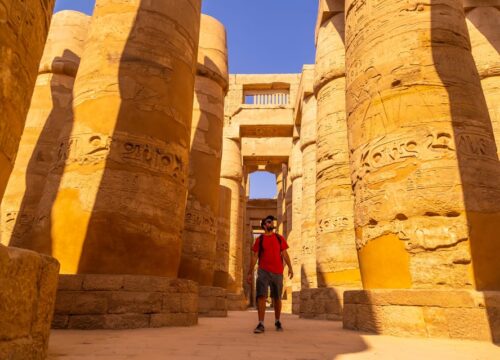 Sie ist die größte Tempelanlage, die jemals errichtet wurde. Hier verewigten die alten Ägypter die heilige Familie von Theben, Amun-Re, seine Frau Mut und den Sohn Chonsu. Die komplette Bauzeit des Tempels dauerte über 2000 Jahre. Zu den bedeutendsten Bereichen des Tempels gehört der große Säulensaal mit 134 Papyrussäulen, der von Sethos gebaut und von Ramses II vollendet wurde.