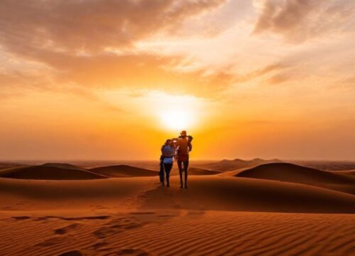 Nur 1 km weiter besuchen wir eine kleine, idyllische Oase, die wir zu Fuß oder per Jeep erreichen. Am späten Nachmittag erleben Sie dann einen magischen Wüsten-Sonnenuntergang mit Panoramablick – ein Moment, den Sie sicher nie vergessen werden.